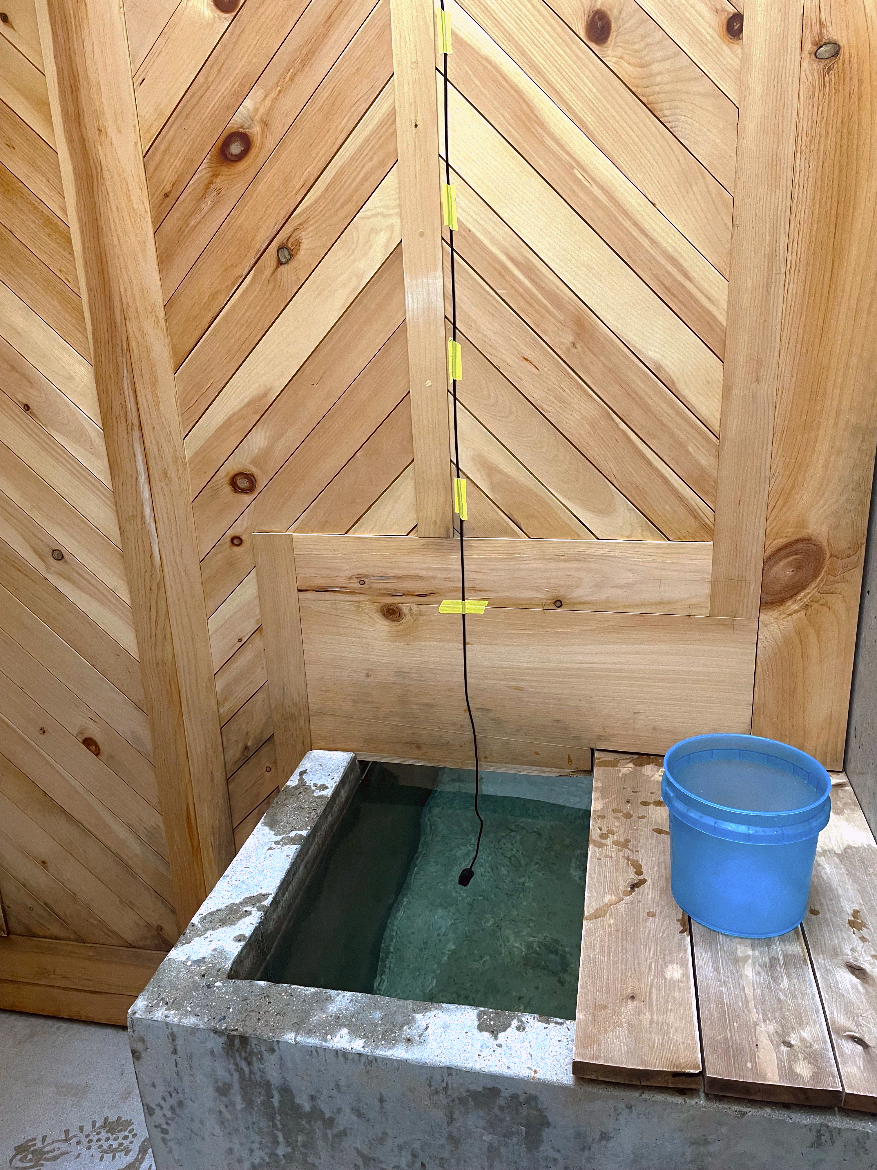 While melting into puddles, we also devised a sound installation called The Seven Elements, which was enacted on a “Silent Friday” wherein every visitor is asked to remain silent throughout the day. We tried to play with this silence, rather than capitalize on it, by activating many of the spaces ambiently: we sent live audio from the cold pool outside the saunas to a hidden PA system on the roof, letting everyone in the exterior warm pools know that someone, somewhere, was cooling off. We installed a miniature speaker in the sauna’s vent that played audio of machinery and pipes, recorded over the course of the week, into the deepest chamber of the bathhouse, bringing sweaters in closer sonic proximity to the infrastrusture of the space.